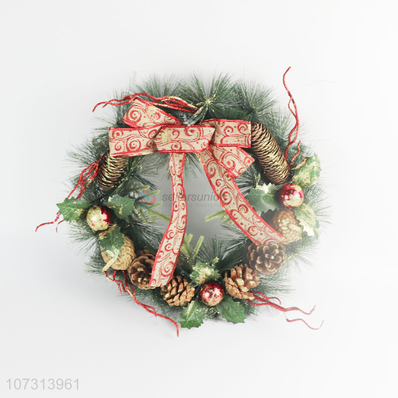 High Sales Bowknot Pinecone Christmas Wreath for Christmas Decoration