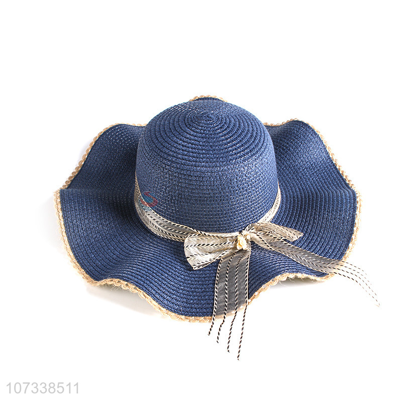 Hot Selling Wave Brim Floral Straw Hats Ladies Sun Hats For Women