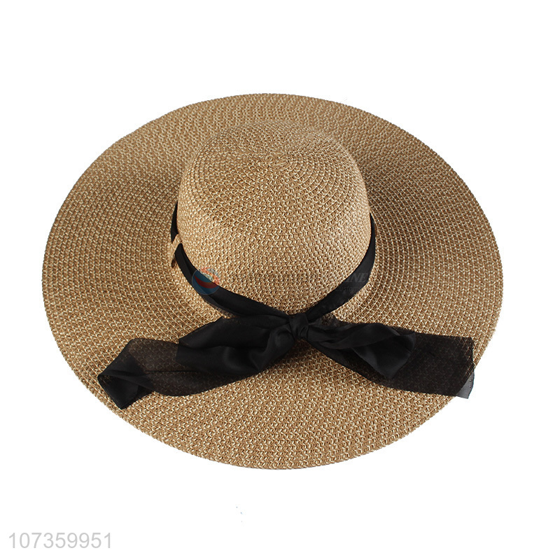 Best Selling Wide Brim Beach Hat With Black Cap Ribbon
