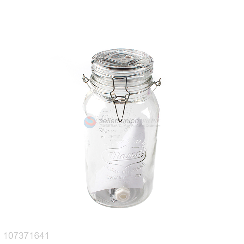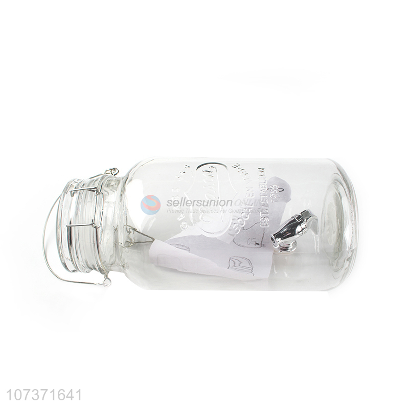 Factory Directly Sale Glass Fruit Juice Beverage Jar With Tap