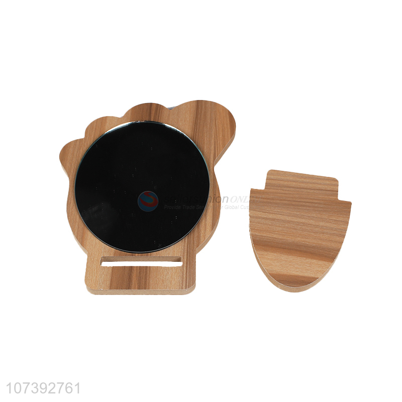 High Sales Cute Foot Shape Design Wooden Single Side Makeup Mirror