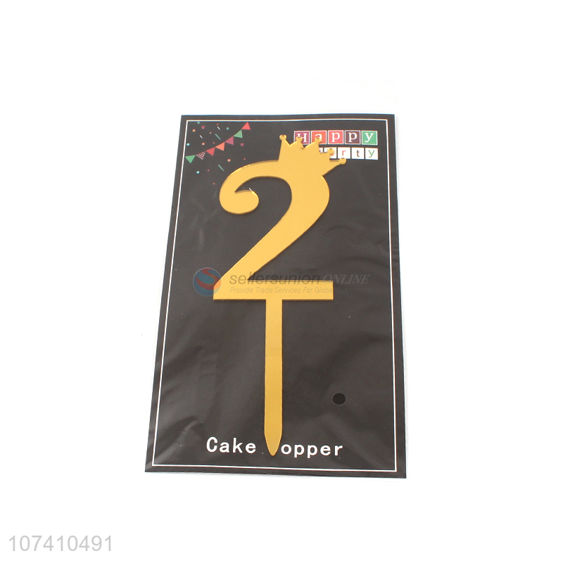 Hot sale decorative metallic acrylic crown number cake toppers
