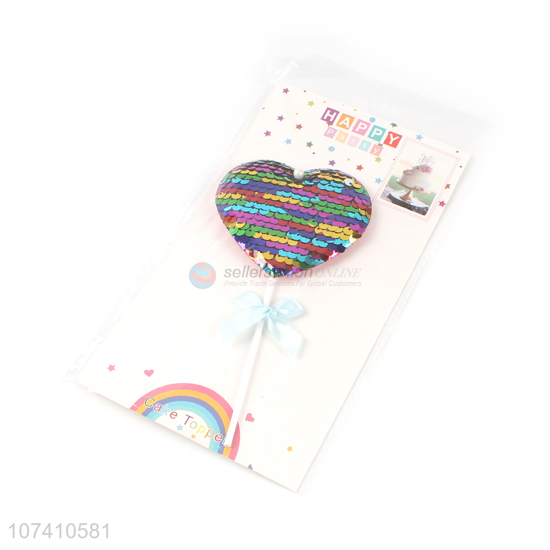 Factory direct sale sequin heart cake topper party decorations