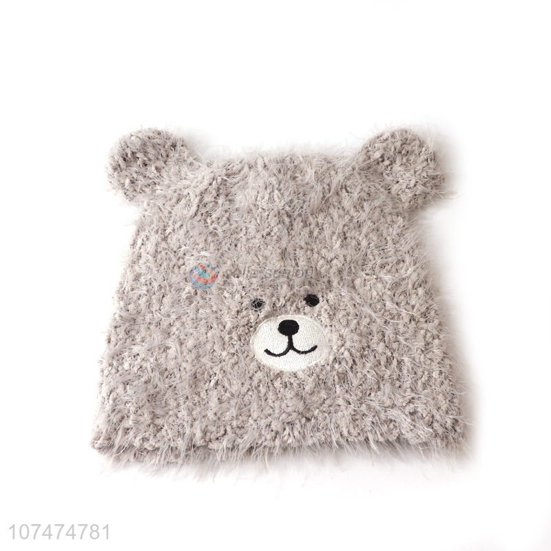 Factory direct sale grey cute bear outdoor windproof knitted hat