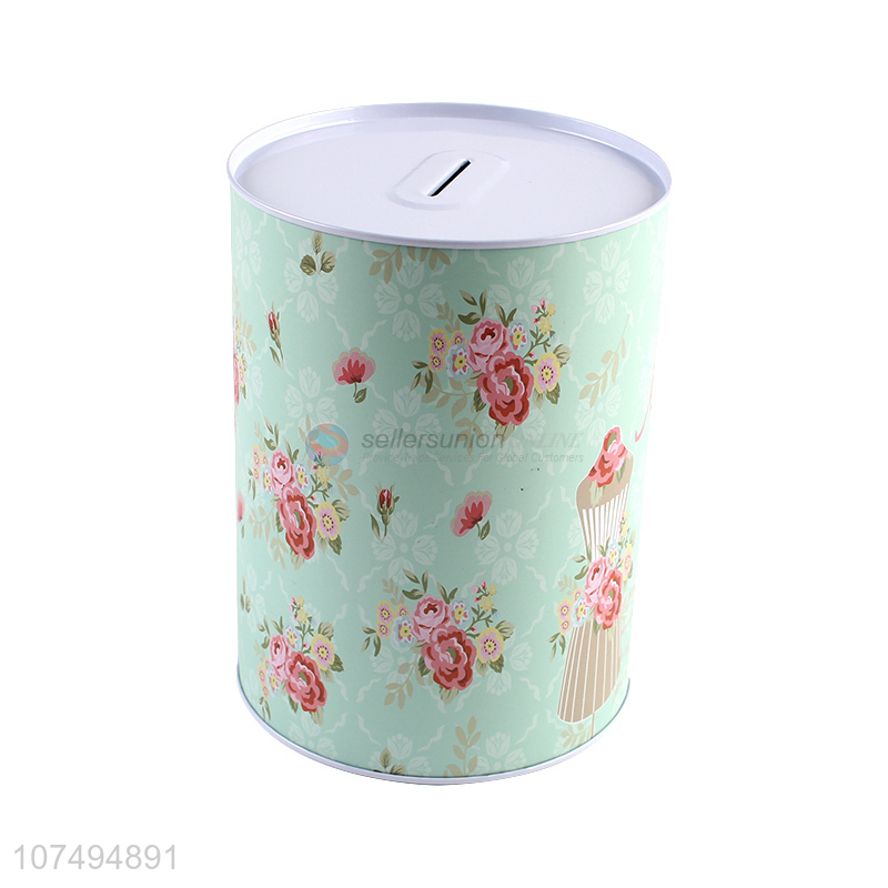 Good quality flower printed round metal coin box saving box