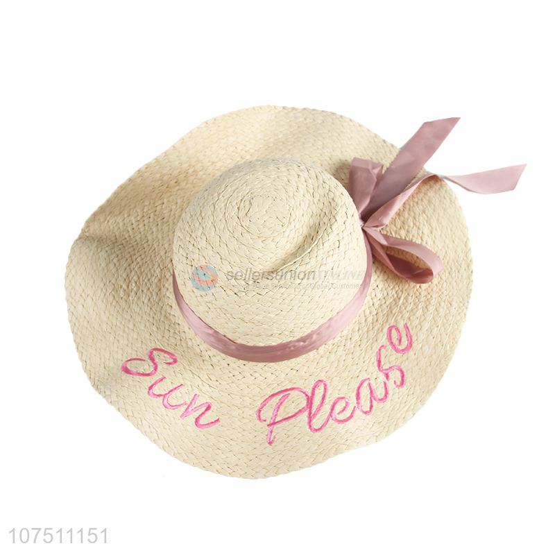 Custom women summer paper straw hats wide brim sun hat