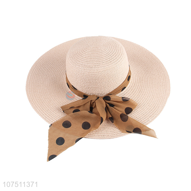 China supplier fashion ladies polka dot ribbon sun hat straw hat