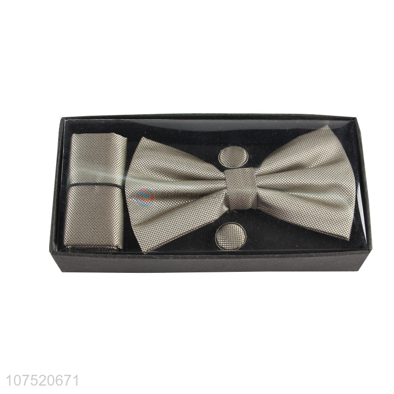 Bottom price grid bow tie necktie and cufflinks set for men