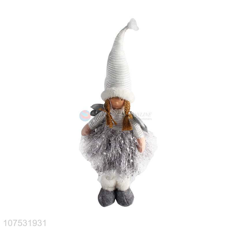 New design Christmas table decoration standing fabric doll with hat