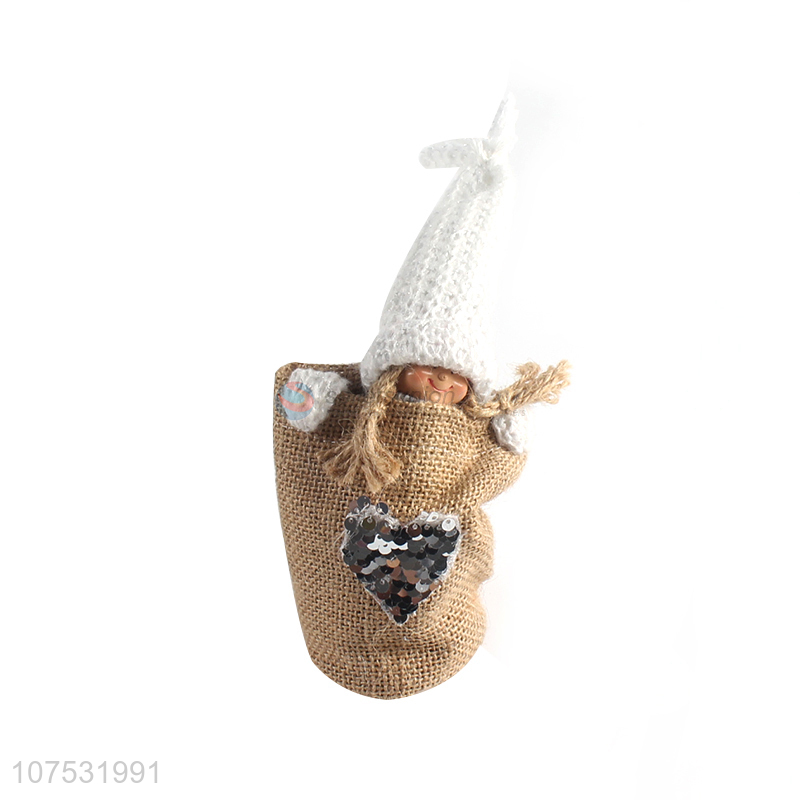Good quality decorative knitted hat Christmas fabric doll in linen bag