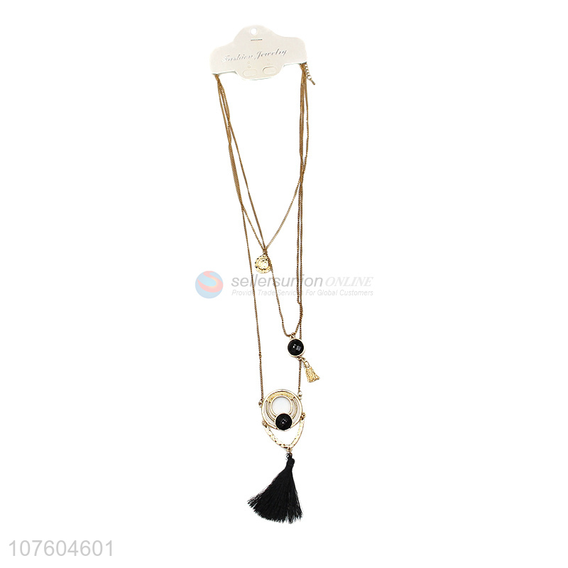 China factory 3 tier chain necklace pendant necklace with tassels