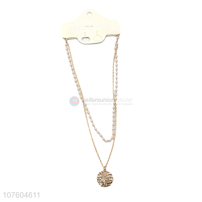Fashion 2 tier pearl necklace round pendant necklace for ladies