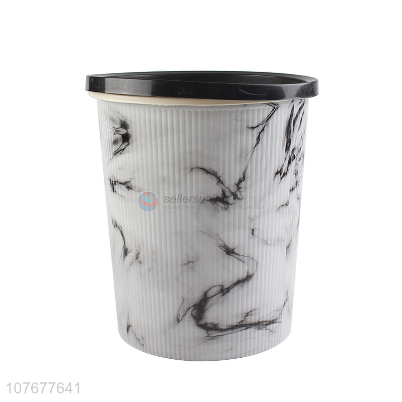 Hot sale round imitation marble pattern household trash can with pressing ring