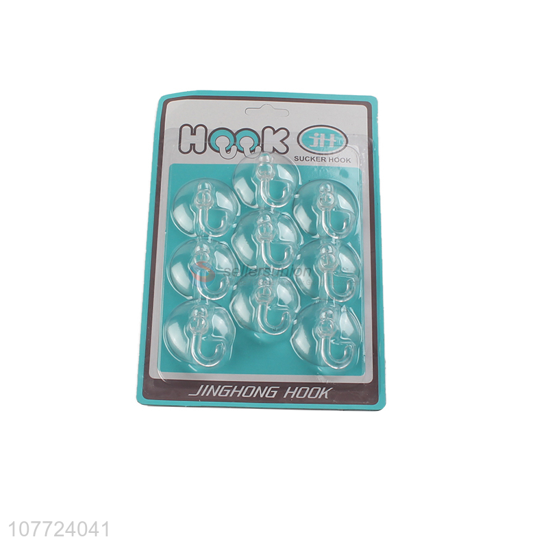 Latest design 9 pieces clear strong hold plastic sucker hook wall hanger