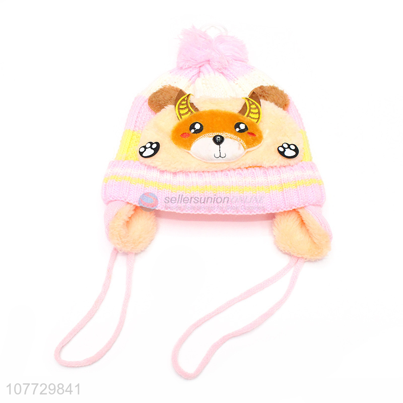 Factory direct sale cartoon animal children beanies kids winter hat with earflaps