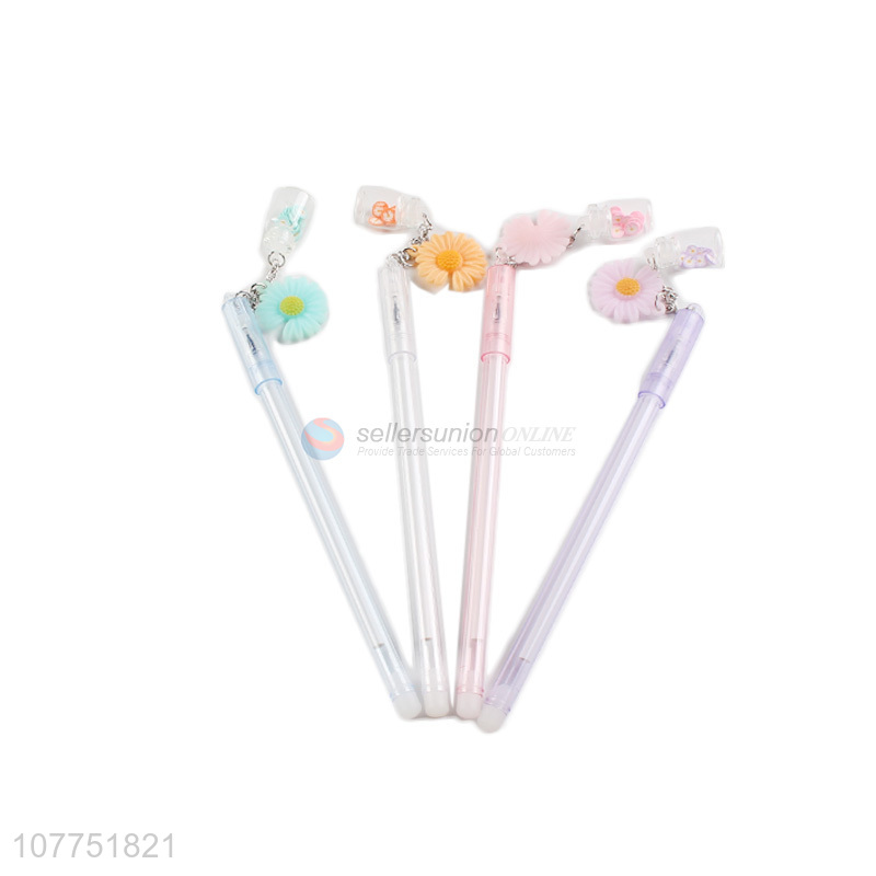 Most popular flower pendant plastic gel ink pen student stationery
