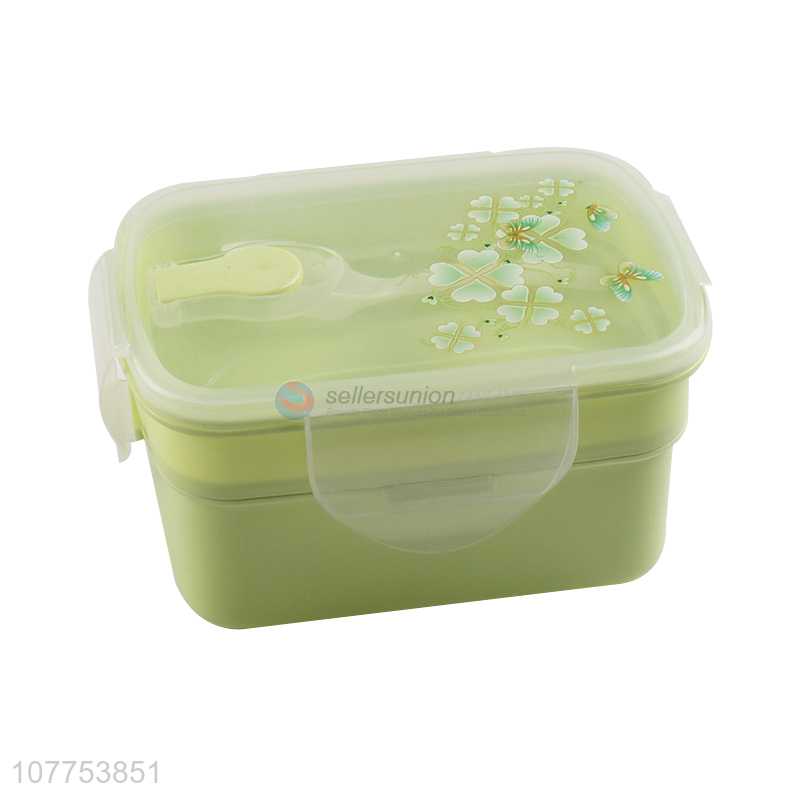 Good Quality Two Layers Lunch Box With Plastic Spoon Set