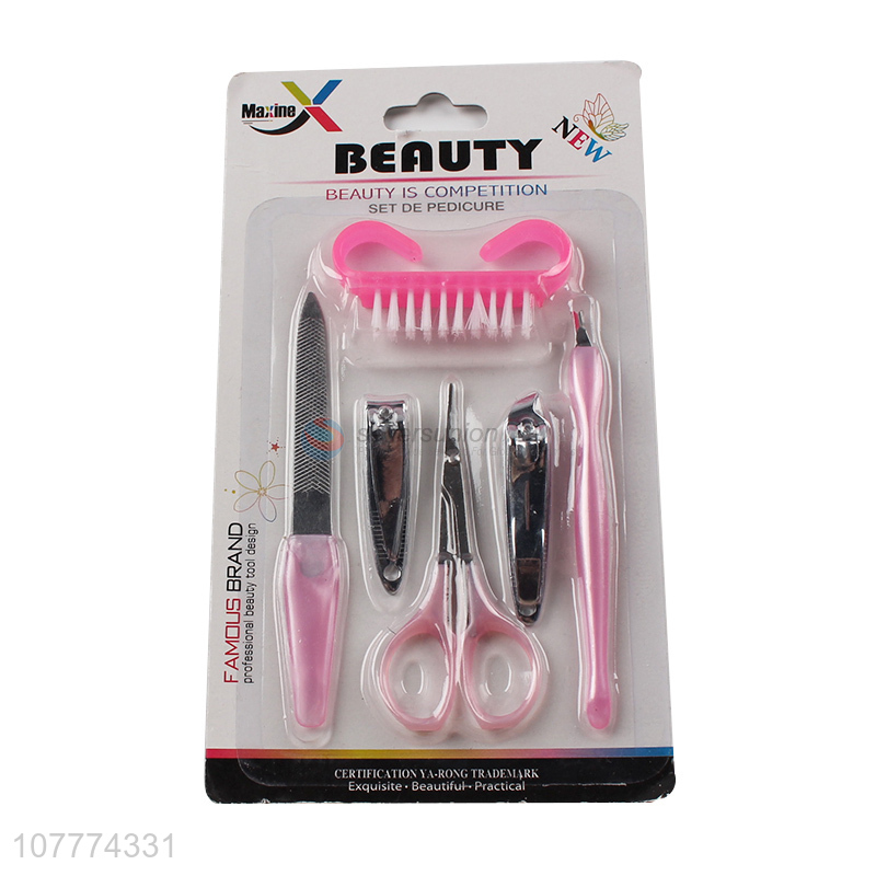 Factory price 6 pieces beauty manicure set nail file eyebrow scissors set