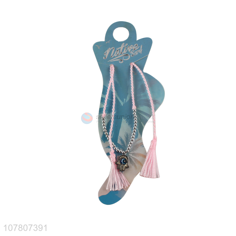 Hot selling pink bead chain handmade ladies tassel anklet