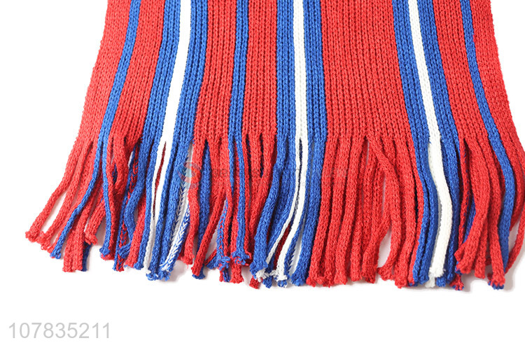 Good quality ladies scarf colorful stripes knitted scarf with fringe
