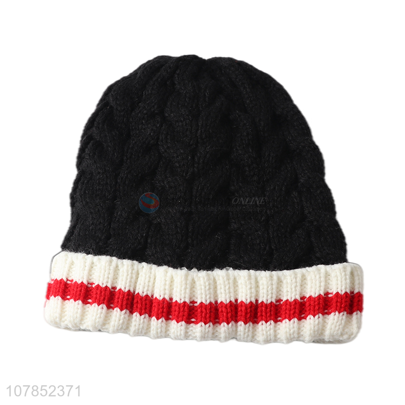 China manufacturer men winter knitted hats fleece lined striped beanies