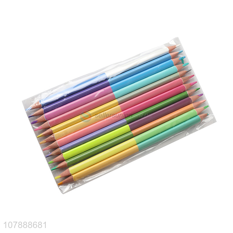 China manufacturer stationery 12 pieces double-ended wooden colored pencils
