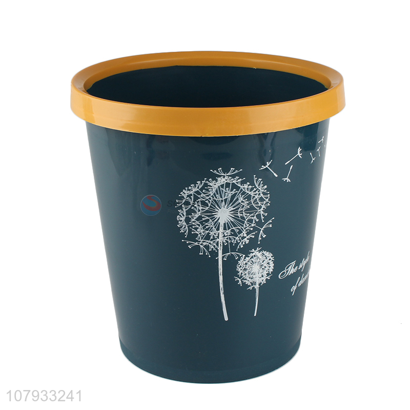 Hot sale dark green shiny dandelion trash basket printing plastic trash can