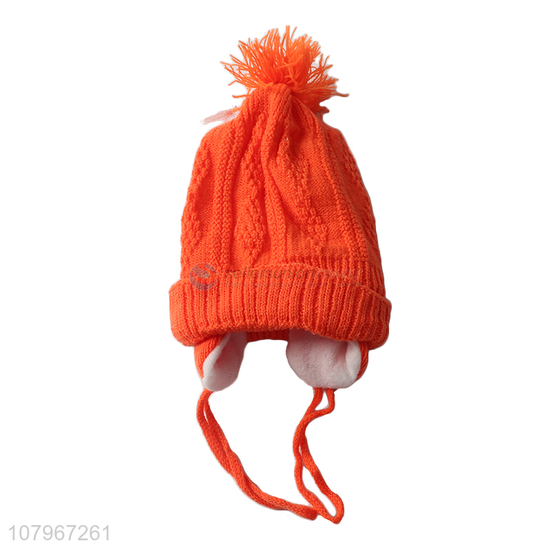Good quality baby winter thermal knitted earflap hat with pom pom