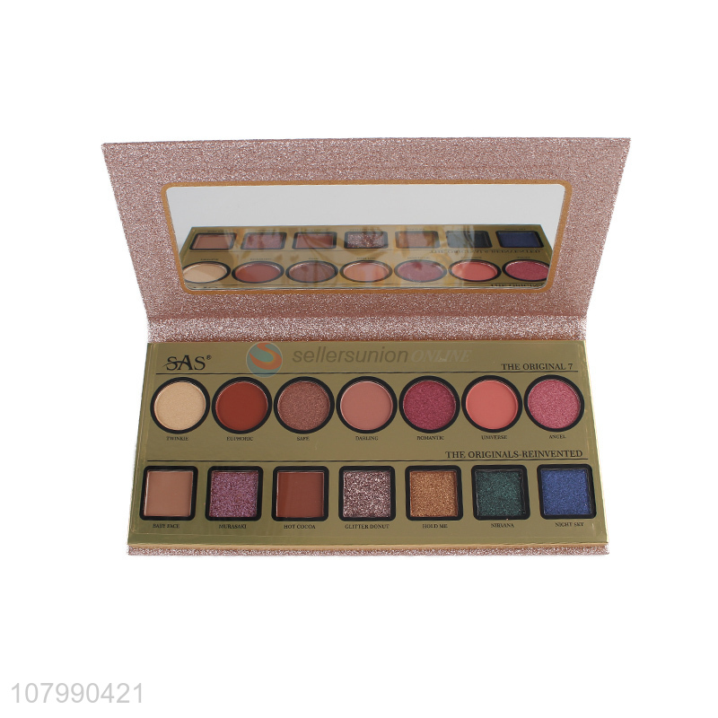 Hot selling 14 colors high pigment glitter eyeshadow palette with mirror