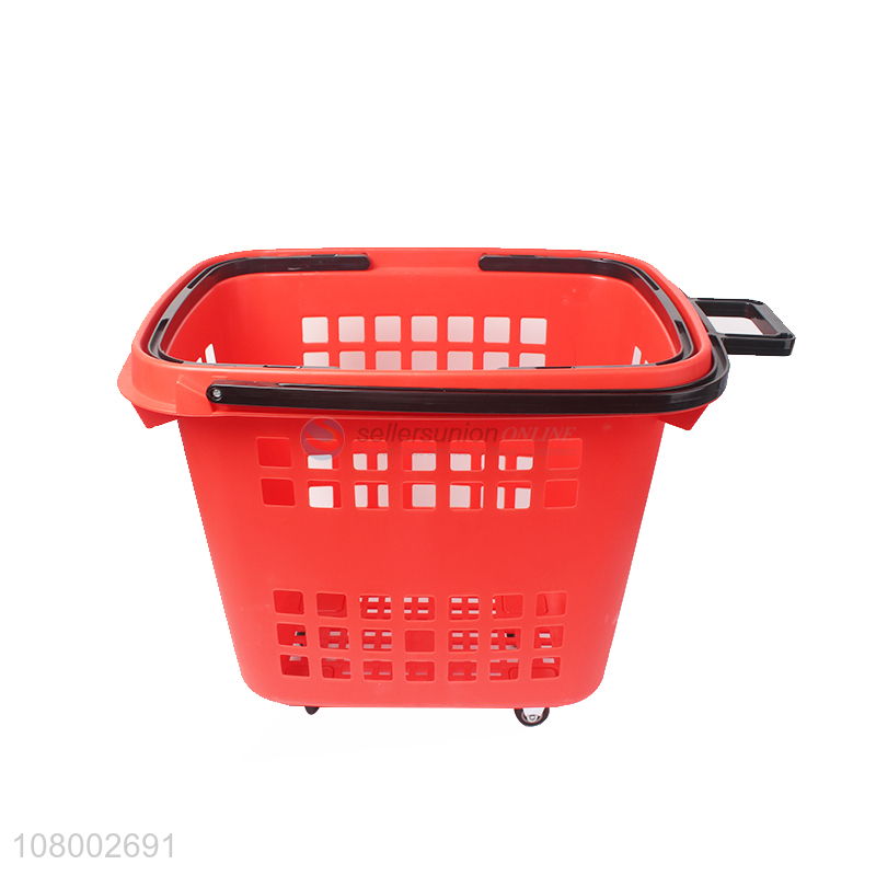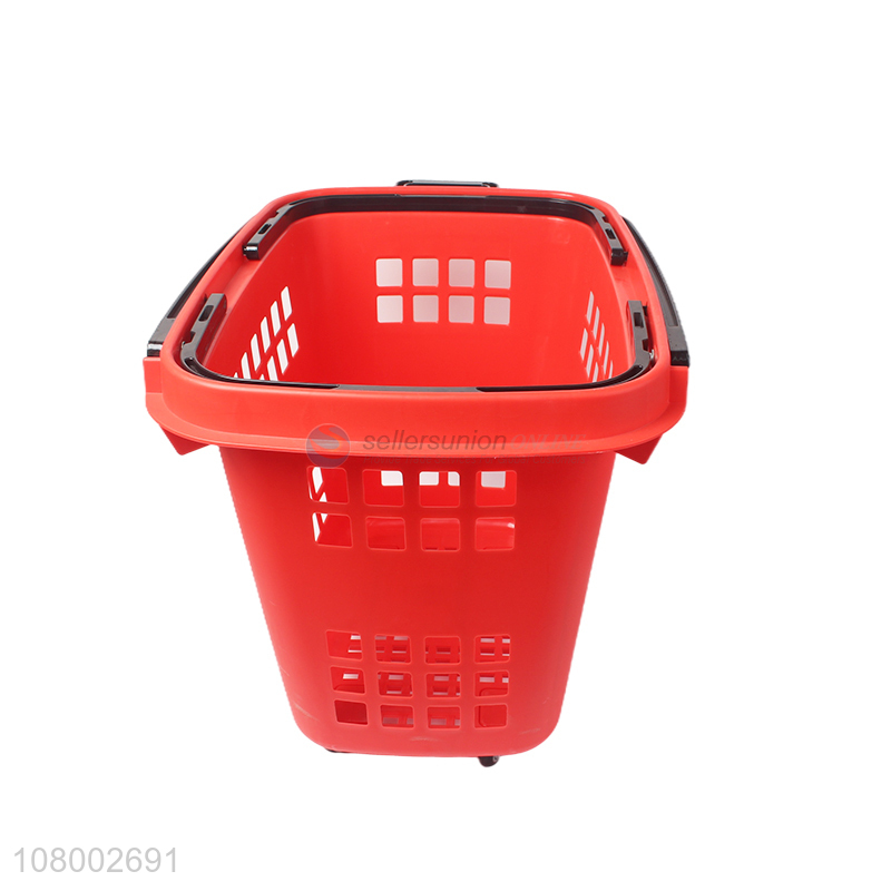 Factory supply extra-large portable plastic shopping basket with 4 wheels