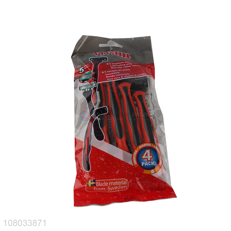 Wholesale 5 blades disposable razor with lubricating strip non-slip handle