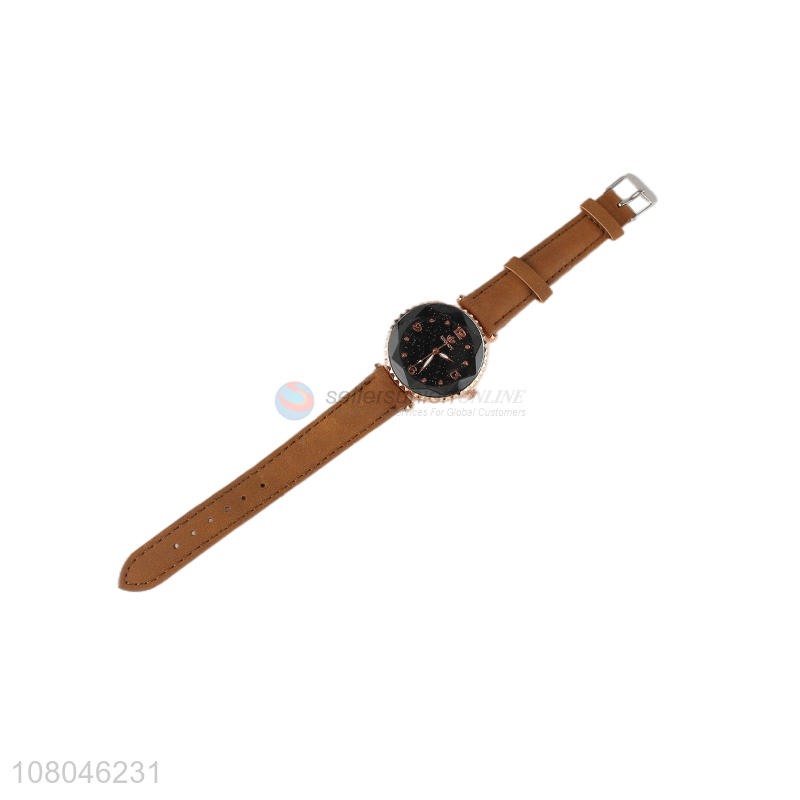 New design custom logo pu leather strap women quartz watch