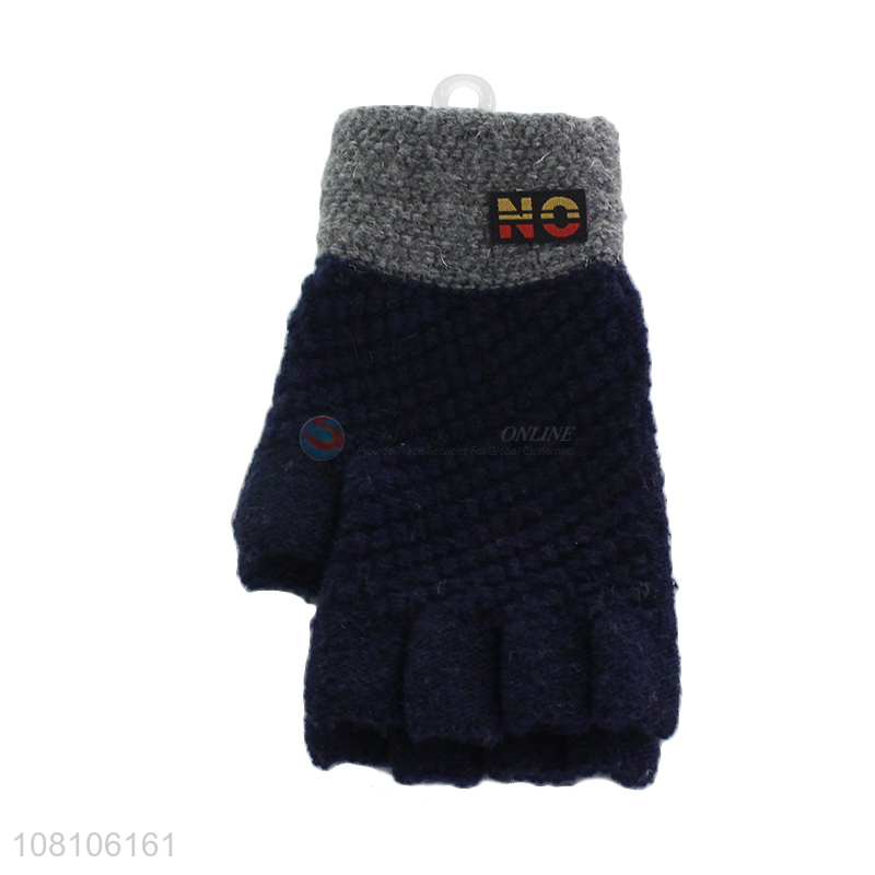 Online wholesale blue knitted gloves men winter warm gloves