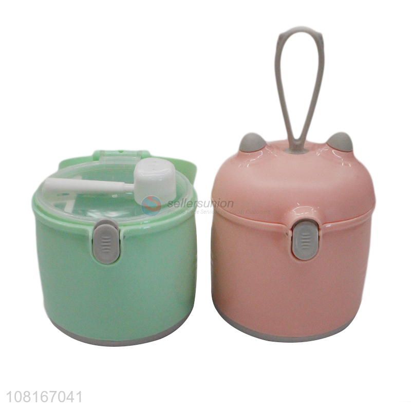 Good quality green portable milk powder container with spoon
