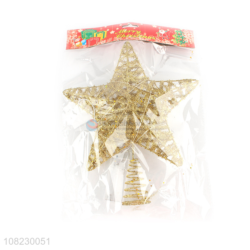 Wholesale golden glitter metal Christmas tree topper star with light