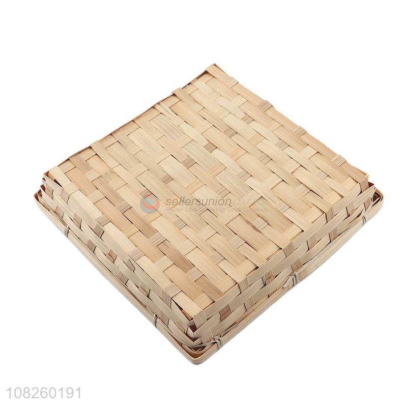 High quality rectangular bamboo woven storage basket bamboo fruit tray