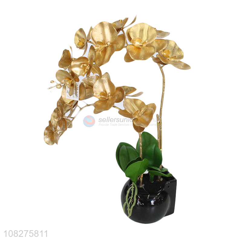 Hot selling artificial flowers fake golden orchid room table centerpieces