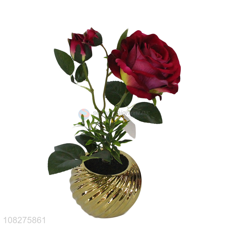 New arrival home table decorations artificial rose flowers with gold vase