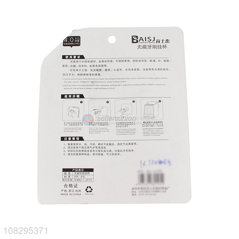 China products seamless wall hanging toothbrush holder brushing cup