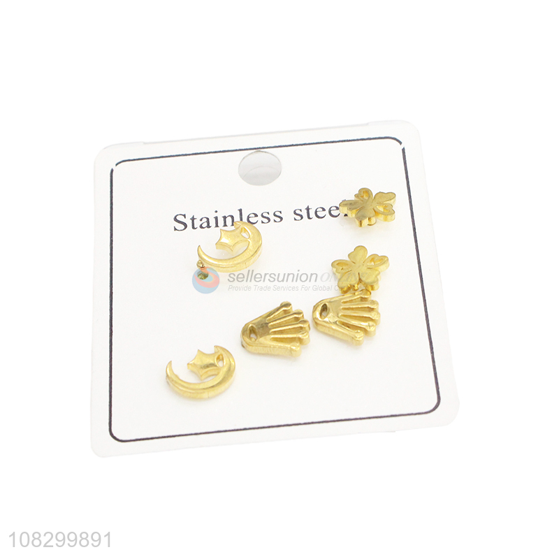 Good Quality Stainless Steel Ear Stud 3 Pairs Earrings Set