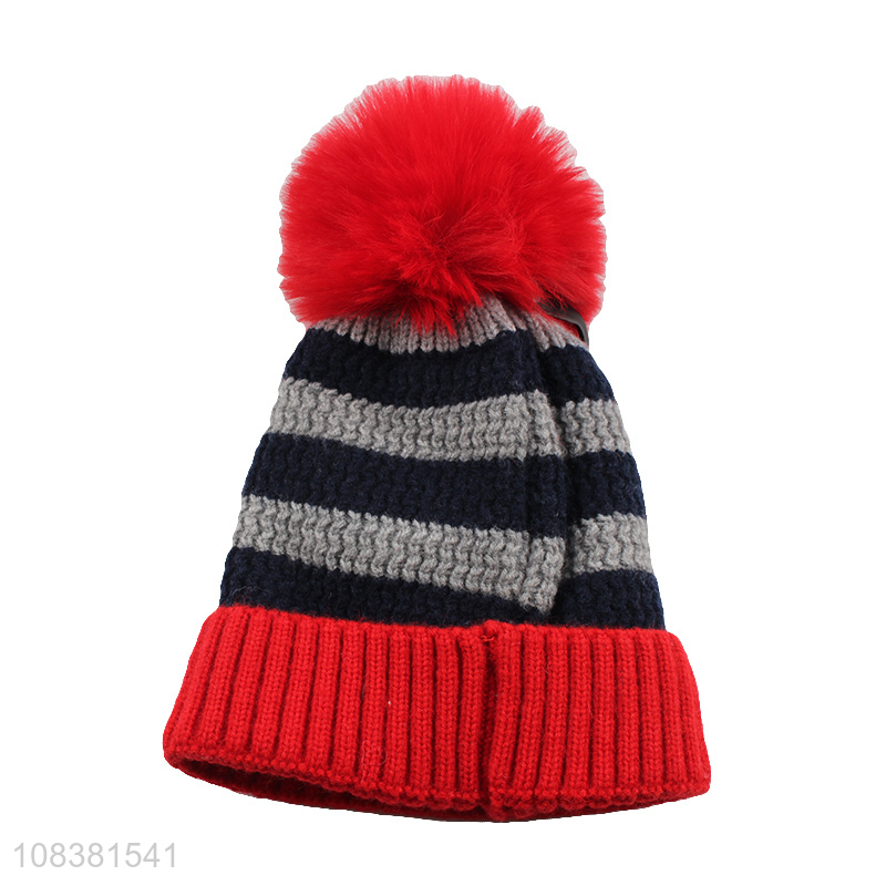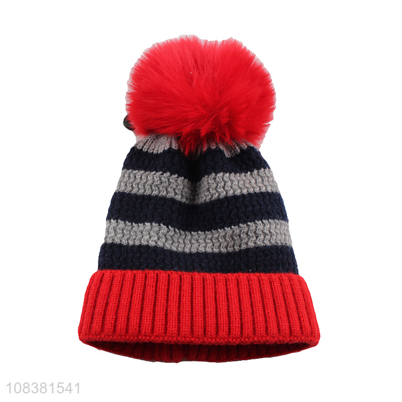Newest Winter Knitted Hat Kids Beanie With Fur Ball