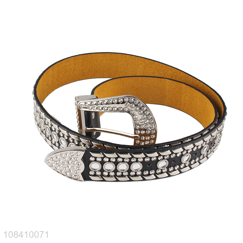 New arrival luxury rhinestone studded pu leather waist belt for women