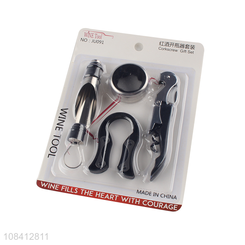 Online wholesale stainless steel metal corkscrew gift set wine tools set