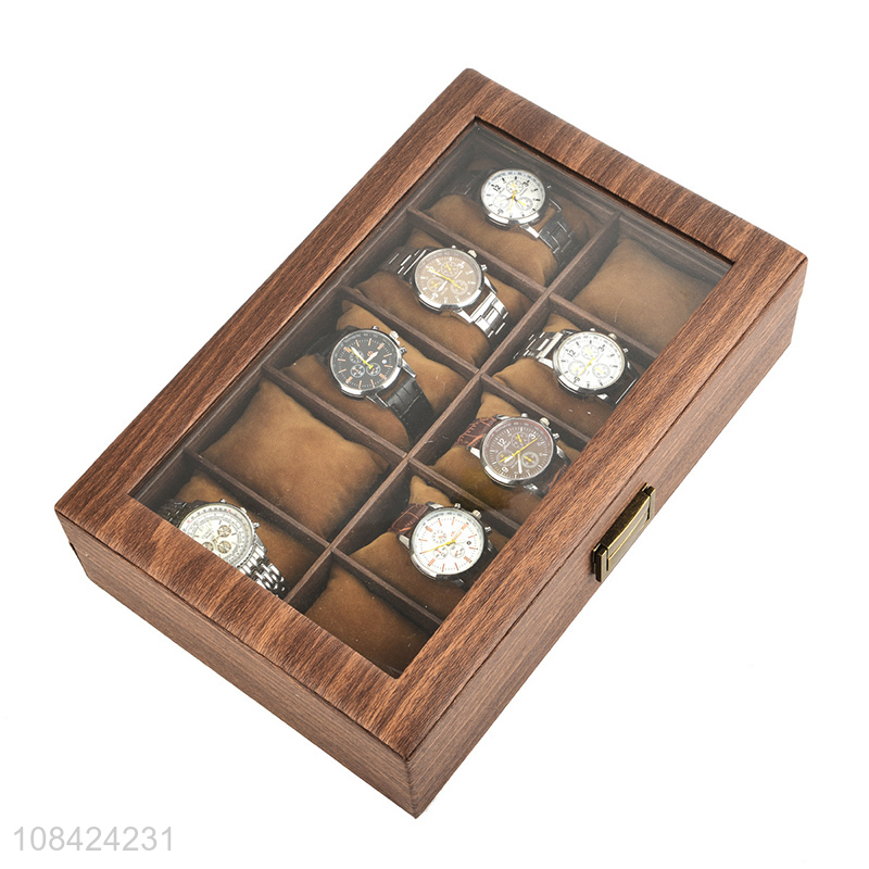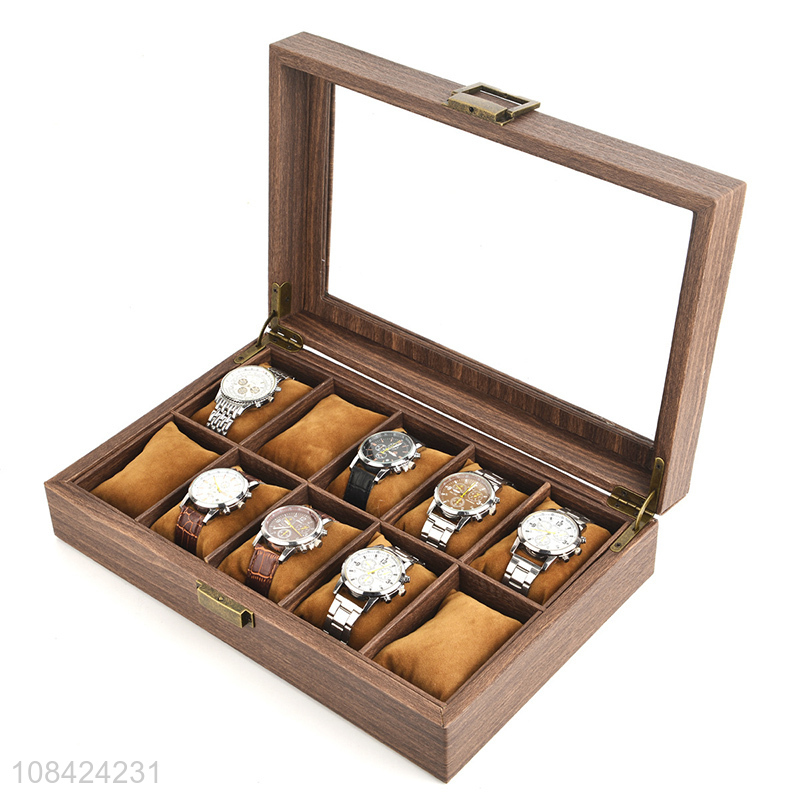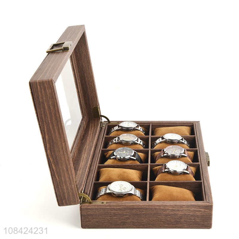Hot sale wood grain faux leather watch box 10 slots watch case
