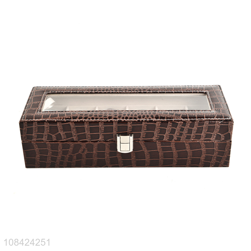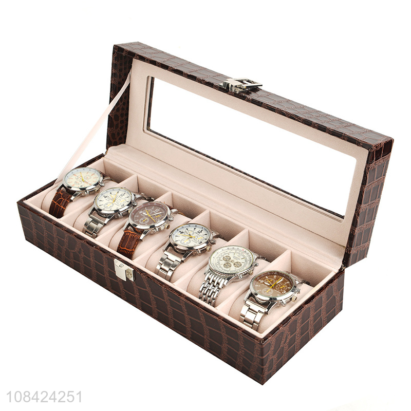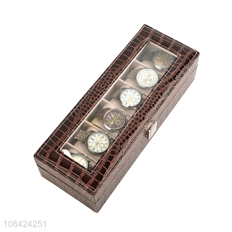 High quality 6 slots crocodile grain pu leather watch storage box