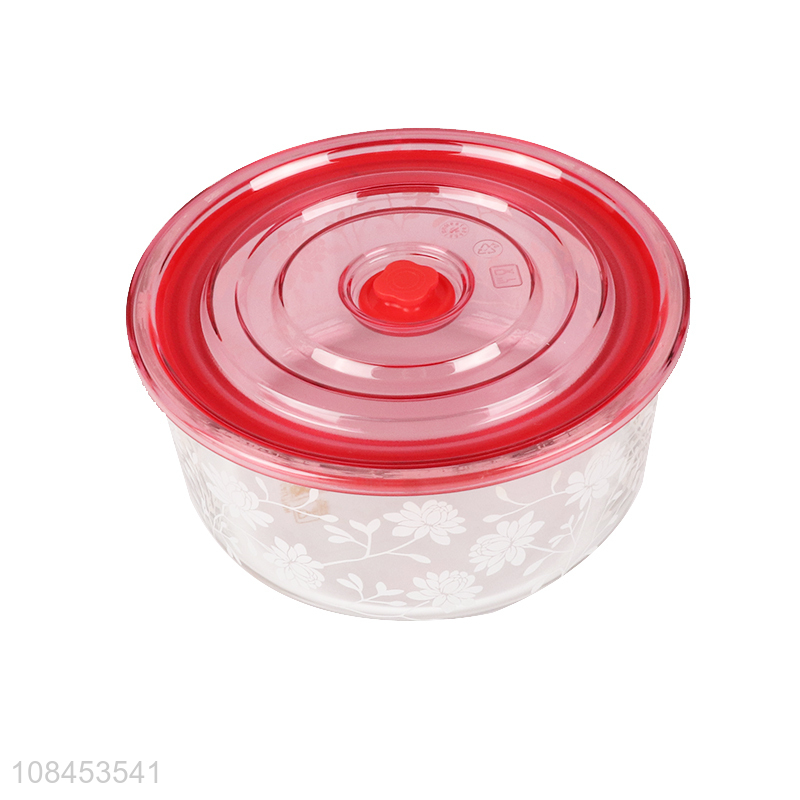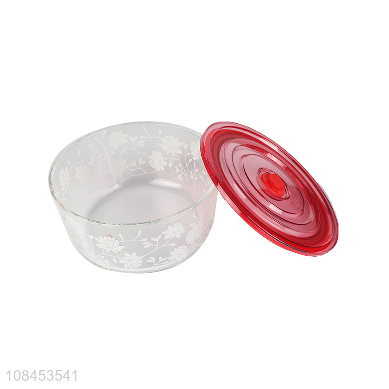 High quality flower pattern heat resistant glass bowl with airtight lid