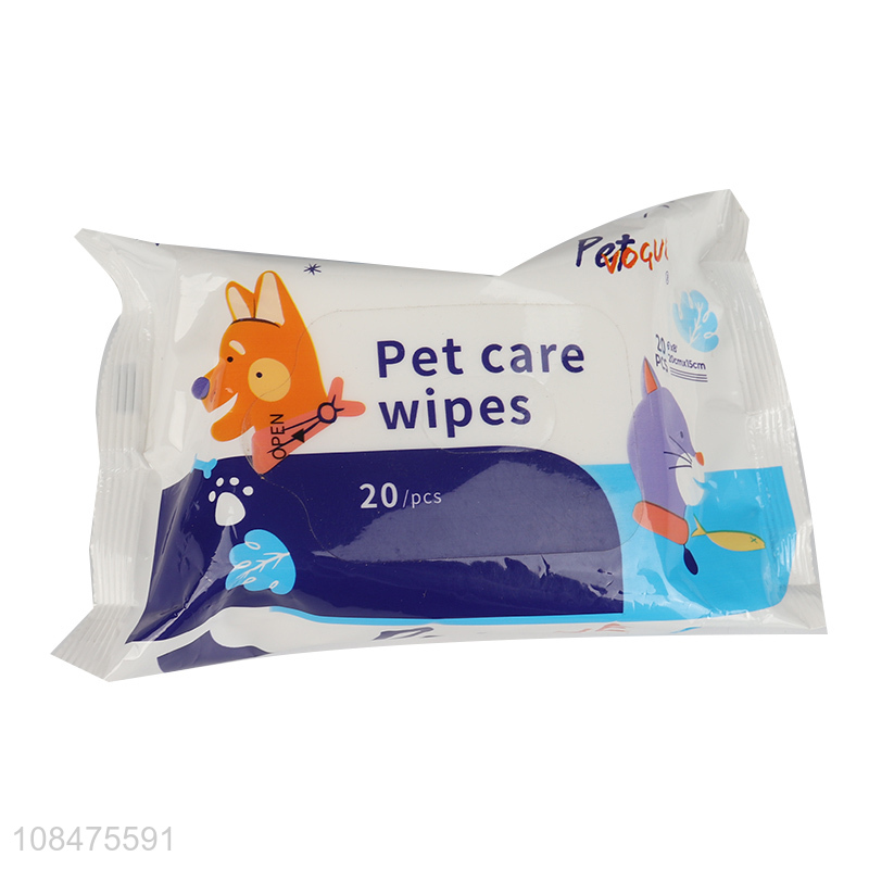 Online wholesale disposable 20pieces pet care wet wipes pet supplies