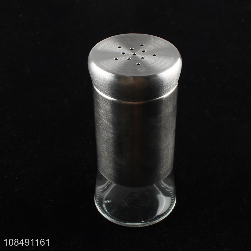 High quality glass salt pepper shaker with stainless steel rotating lid