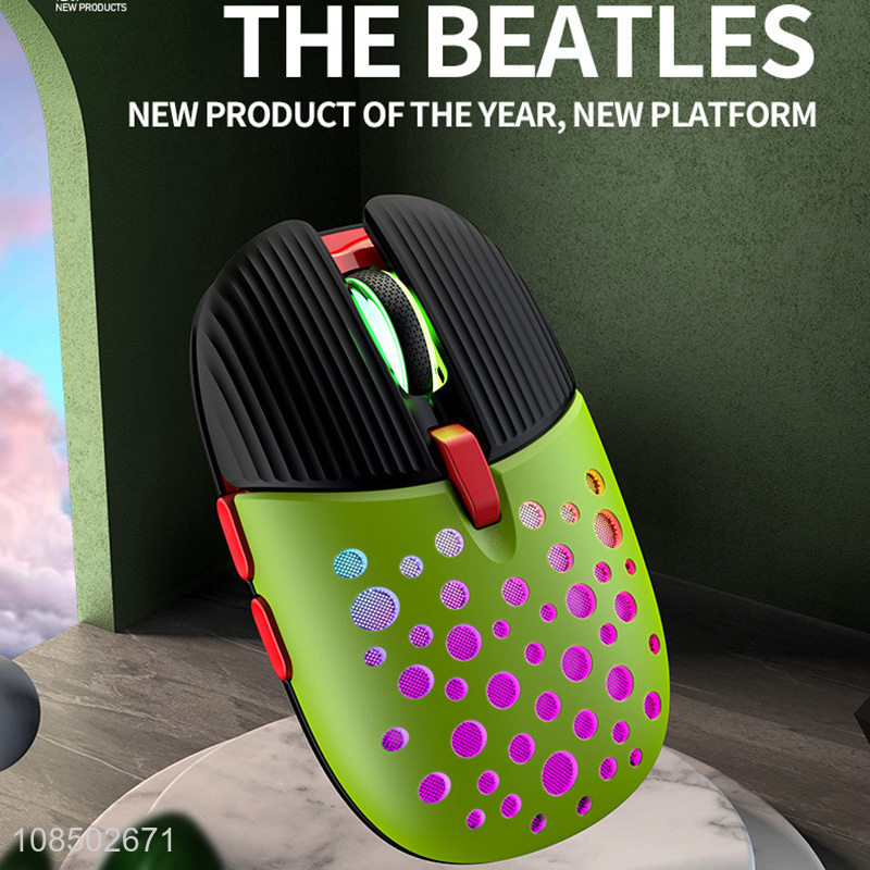 High quality cute 6 buttons RGB light effect wirless rechargeale beetle mouse
