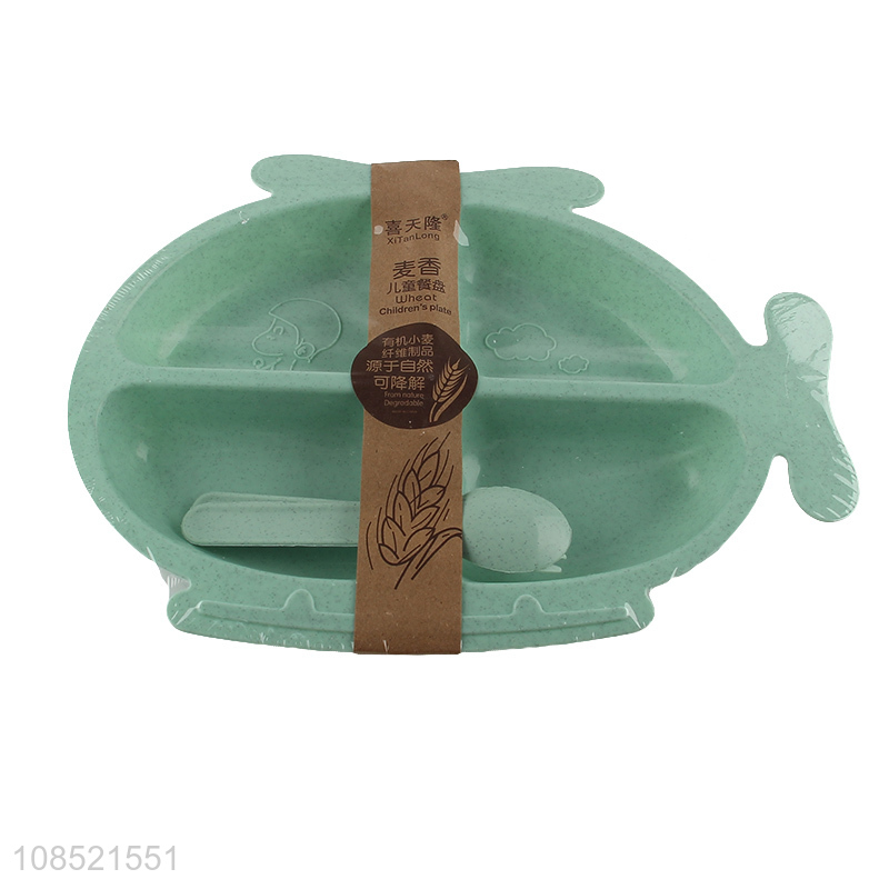 Factory supply wheat straw toddler plate set with spoon & fork